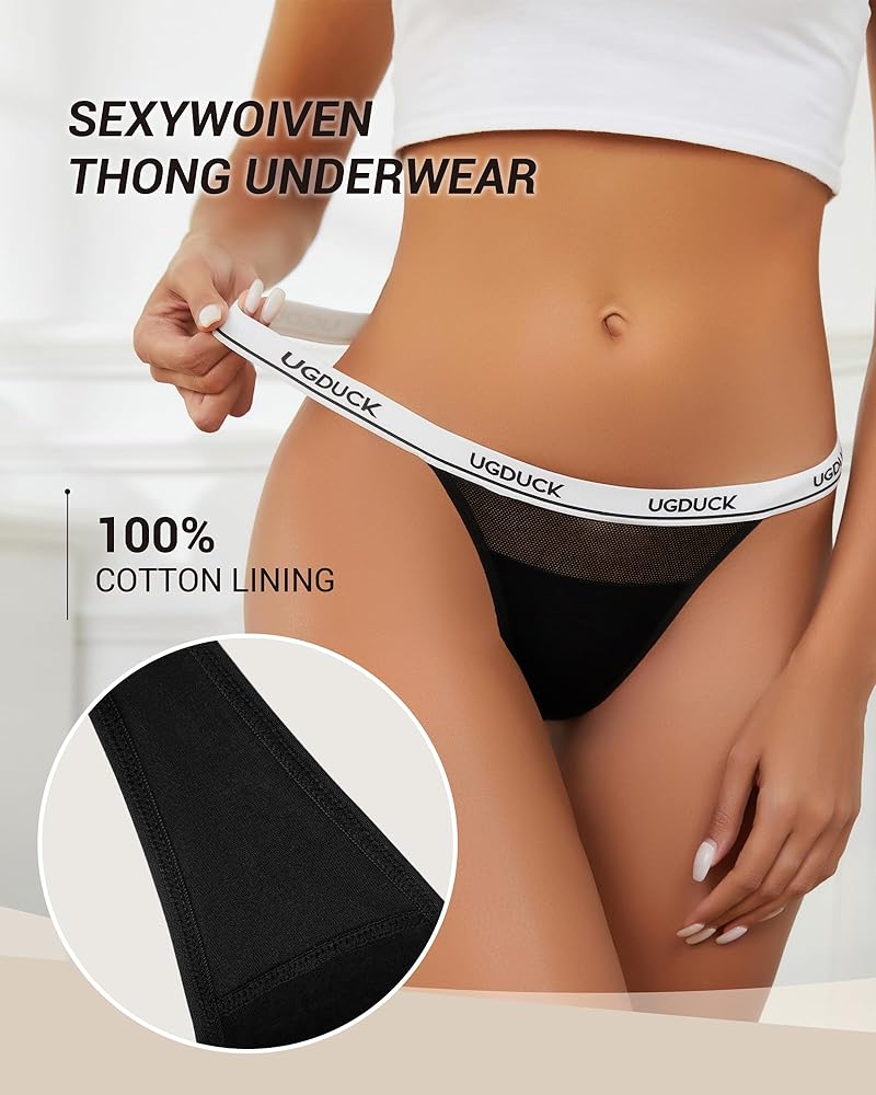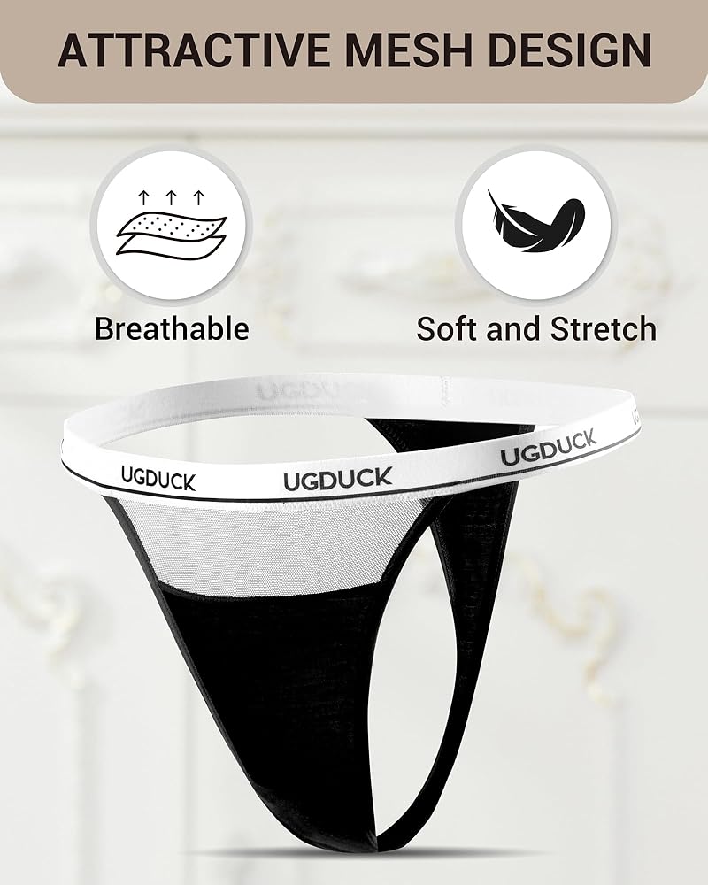 💃【Breathable & Attractive Mesh Design Thongs for Women】Who says comfort can't be sxey? The G String Cotton Thongs feature a sleek and modern design that adds a touch of sophistication to your lingerie collection and the UGDUCK logo for an eye catching sexy look.