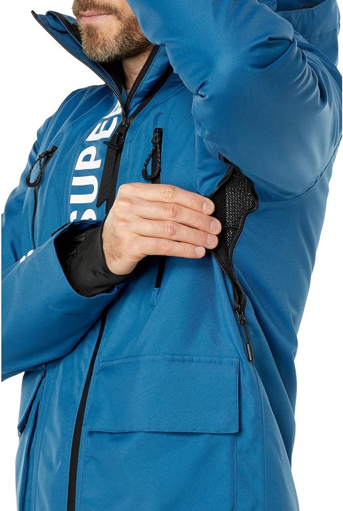 Whether you're hitting the slopes or enjoying the outdoors, do it with ease in the Superdry Rescue Jacket. Relaxed: A classic fit. Not too slim, not too tight. Bungee cord adjustable hood. Two-way front zipper closure. Long set-in sleeves with thumbholes. Underarm ventilation panels. Hook-and-loop adjustable cuffs. Dual zipper chest pockets. Zipper pocket on lower-left sleeve. Fully taped seams. Front flap-closure hand pockets. Powder skirt. Straight hemline. Branding on front. Shell: 100% polyester;Lining: 100% polyester;Padding: 100% polyester. Machine wash, line dry.