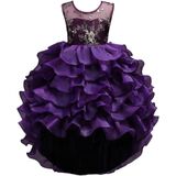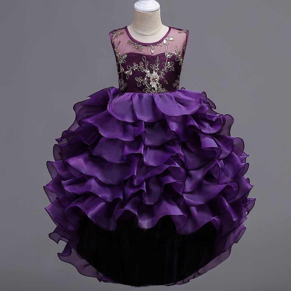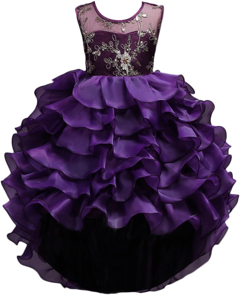 Beautiful and gorgeous design with high-low hem, add multi-ruffle detailing on the hemline;Flower Girls Vintage Overlay Lace Beaded Rhinestone Bridesmaid Wedding Tulle Dresses Party Maxi High Low Ball Gown Pageant Evening Fancy Dance Tutus Princess Dress;