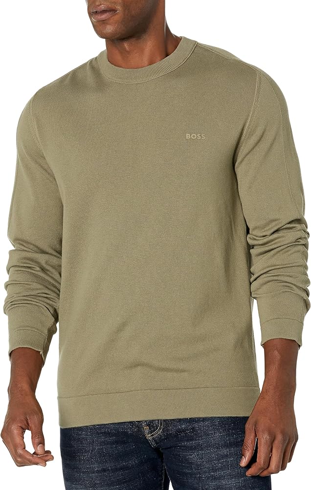 BOSS Men's Lightweight Ribbed Cotton Blend Pullover Sweater