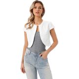 - Crop Denim Jean Jacket, Round Neck, Open Front, Collarless, Cap Sleeve, Denim Cardigan