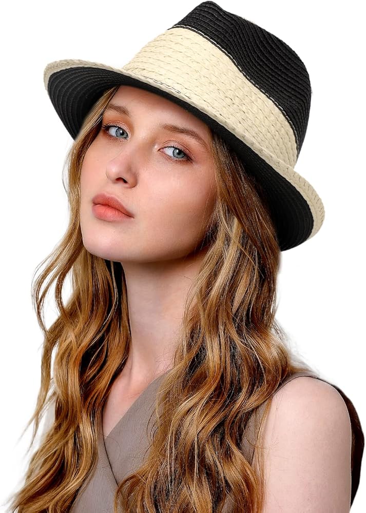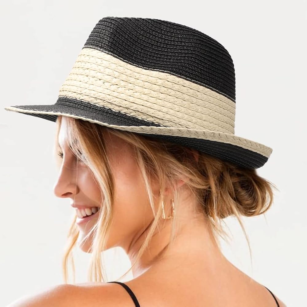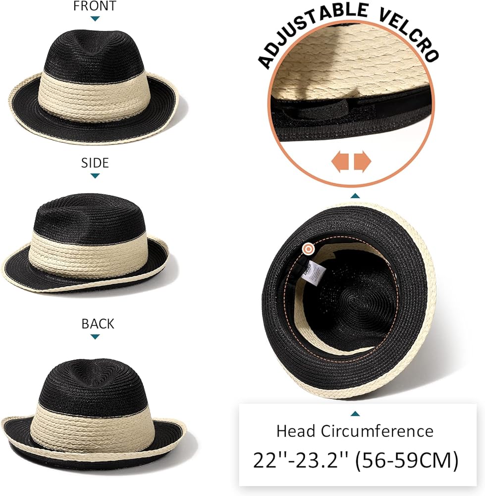 Fashionable & Practical: Classic and innovative combination,straw hat is a must-have for vacation travel! Fashionable appearance, classic shape, raffia splicing, two colors in one, looks energetic, and slightly artistic. The fedora hat is a bright wear, suitable for a variety of outdoor activities, but also a good choice for family and friends gifts.