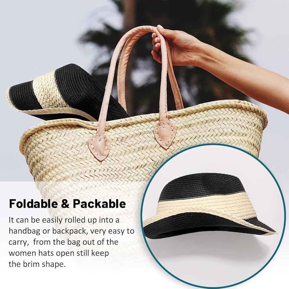 Short Brim Sun Hat: Short brim straw hat may be a better choice for you, it can bring a better balance, compared to the wide brim hat more inclined to fashion and elegant appearance. Fold fedora hat into the bag, open it and still keep the hat shape, together with a beautiful photo.