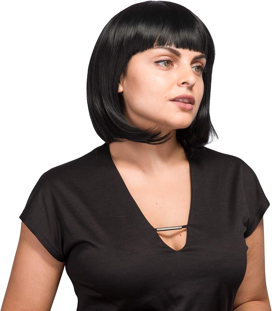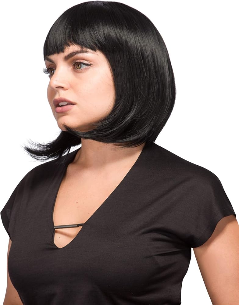 Suitable for Women -- Hair is sewn on an adjustable light-netting cap, which should fit an average size head (Male or Female). AGPtEK mia wallace costume wig is perfect for women