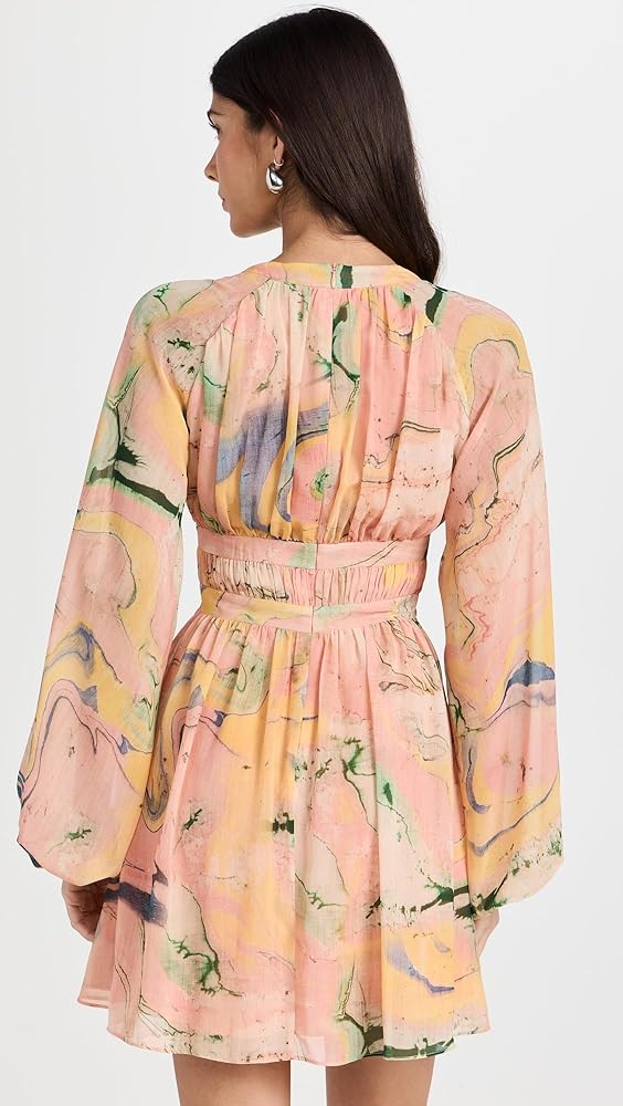 يعمل حسب الحجم. ، مصمم بصورة ظلية على شكل حرف A وطول صغير. يوفر الفستان الحد الأدنى من التغطية عند الصدر؛ يوصى بارتداء حمالة صدر بديلة. يناسب بشكل مريح قليلاً عند الخصر الإمبراطوري. يتمتع قماش الشيفون بملمس فائق النعومة وخفيف الوزن.