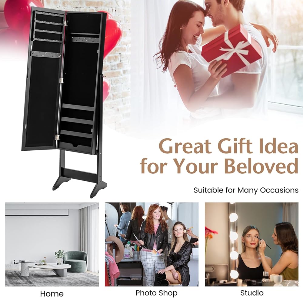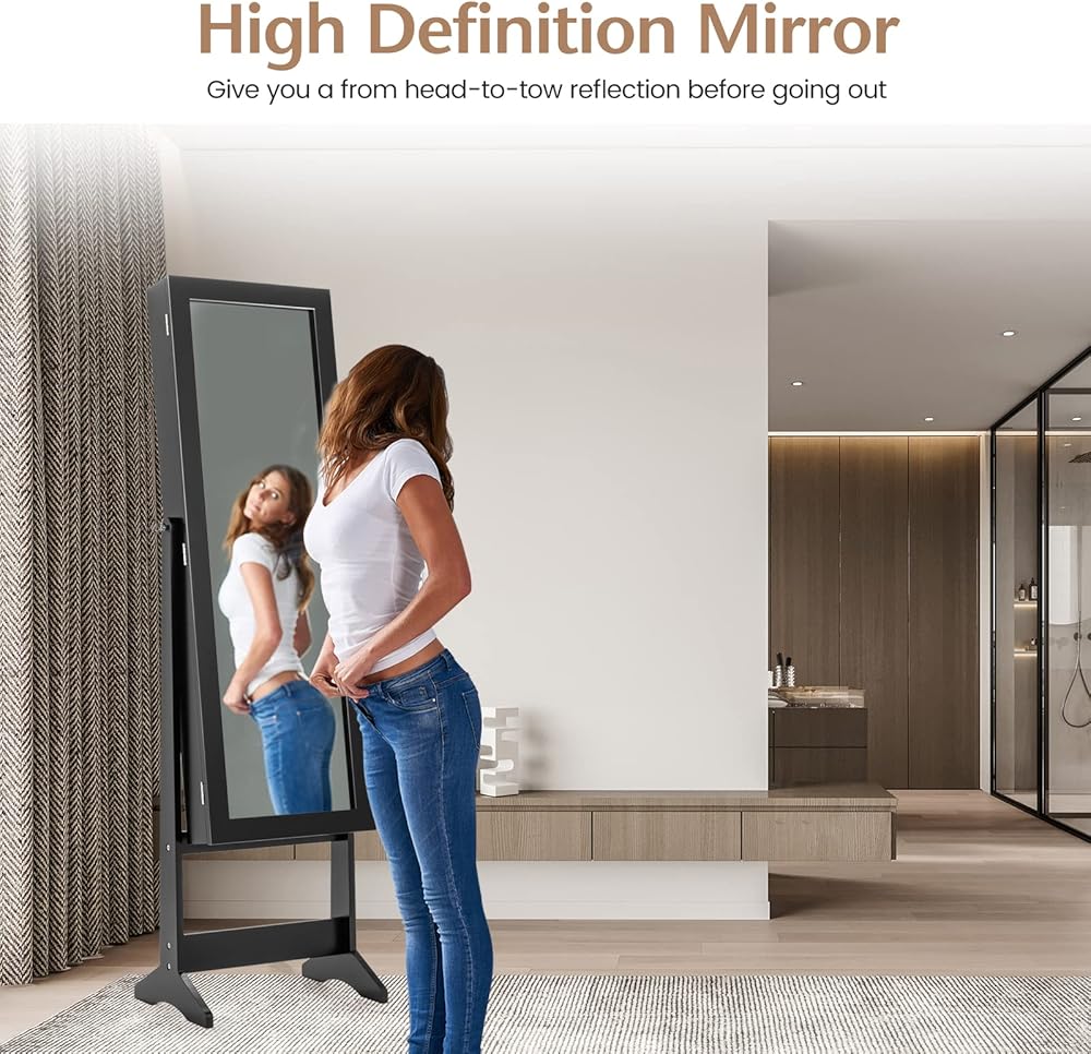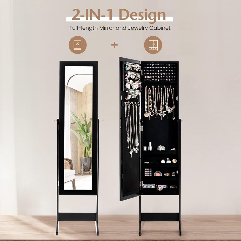 💍【2 in 1 Jewelry Cabinet】: The jewelry organizer is a combination of a full-length mirror and a jewelry box, which not only is practical, but also saves space. It's ideal for your bedroom, living room, dressing room or cloakroom.