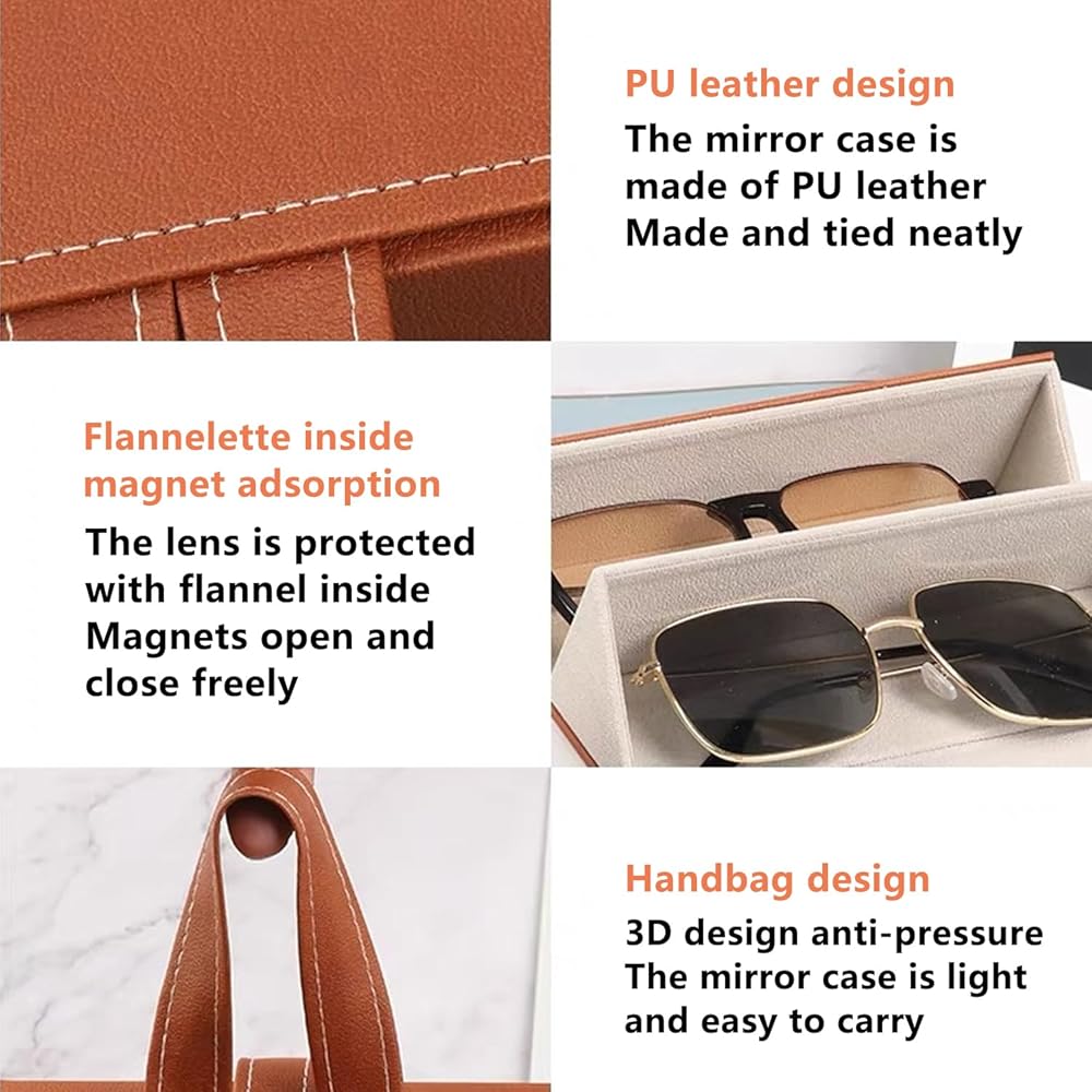 【Multiple Slots】Designed with 3 slots to store your sunglasses, eyeglasses, eyewear. Hard PU outer layer with independent storage compartment, provide enough space to protect and store your eyeglasses.