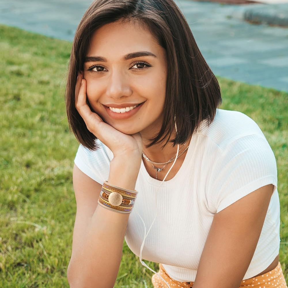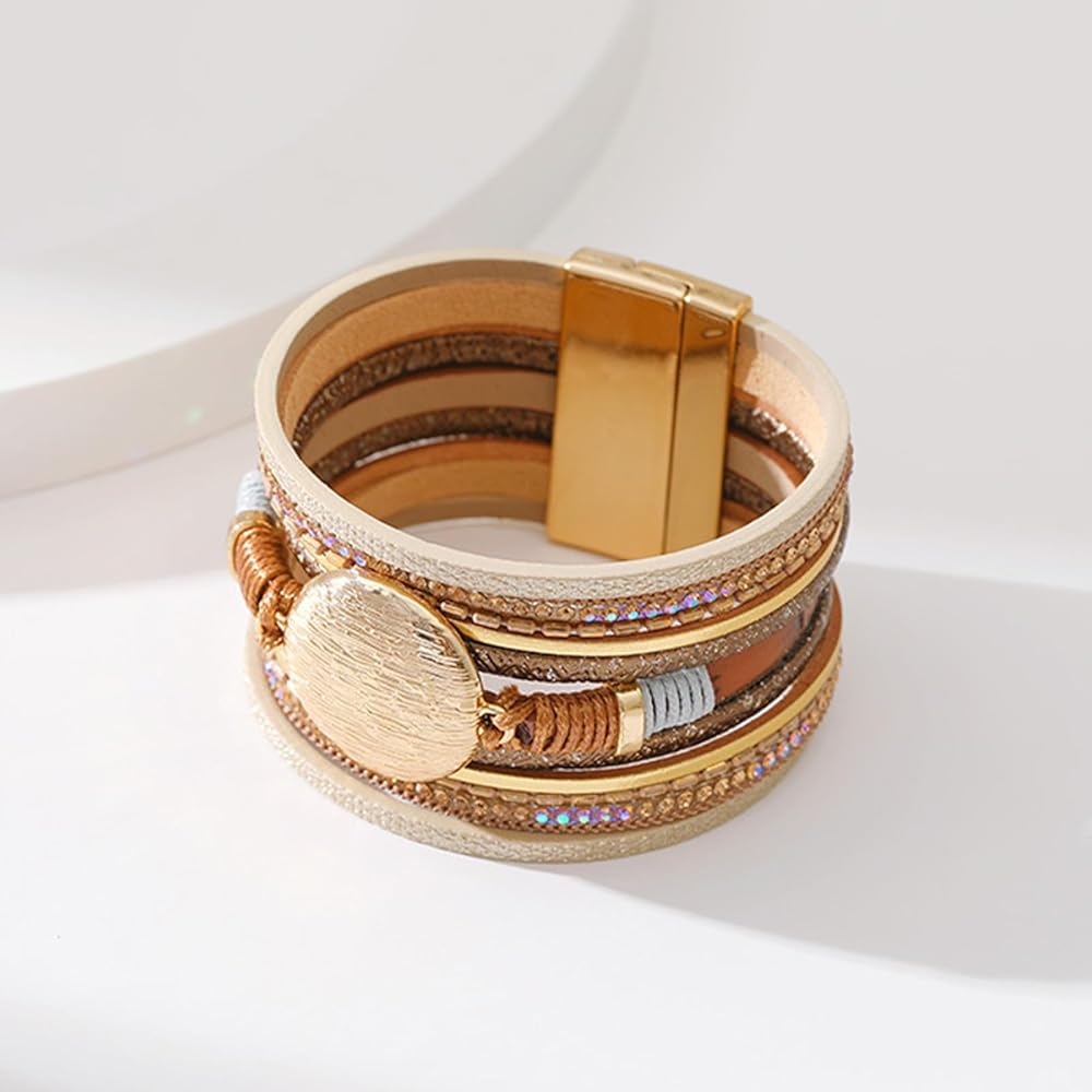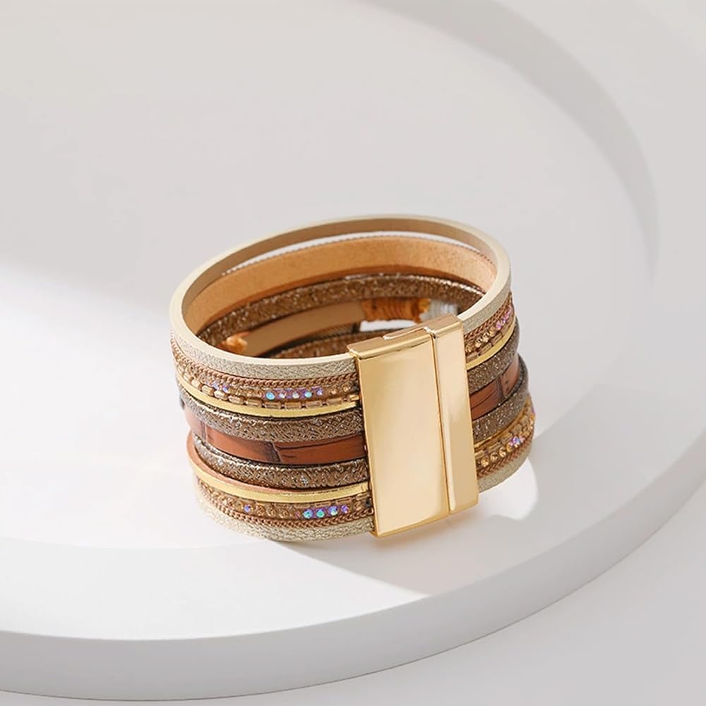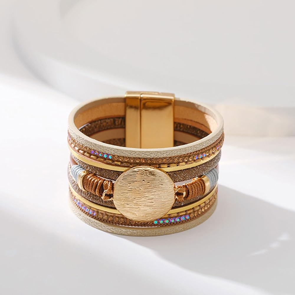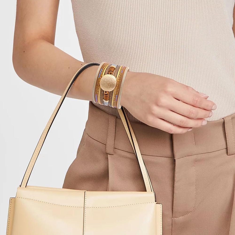 Multi-Layered Boho Bracelet: The bracelet showcases a multi-layered cuff style with a bohemian flair, creating a fashionable and stacked look. It effortlessly enhances your overall outfit, adding a unique touch to your style.