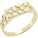 RUGGED ELEGANCE - This fine 10KT solid gold piece is available in rose, white, or yellow gold. This flat topped signet style ring features nugget style texture on the top and sides of the tapered band. The ring is available in a wide variety of sizes making it a fantastic choice for a fashion band or pinky ring alike. This uniquely textured ring is sure to invite compliments and spark conversations.