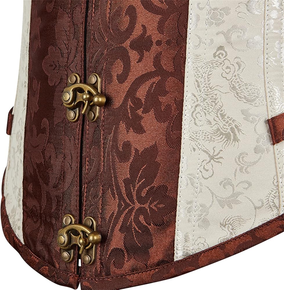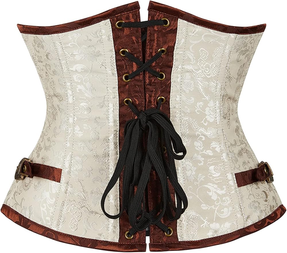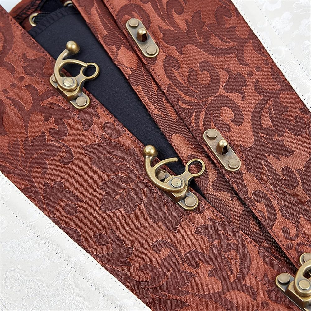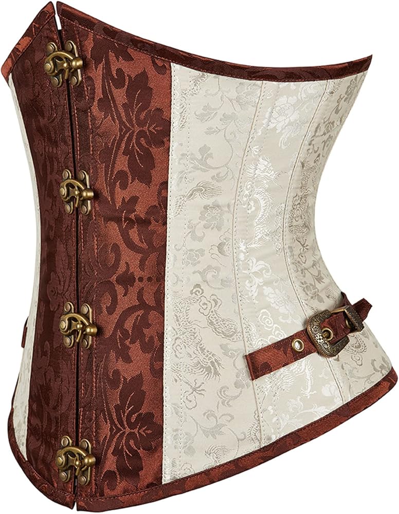 Underbust corset tops for women Choose white and brown as the main color,fulfill with retro vibe and color,waist training corsets for women have Artwork-like delicate and particular brocade pattern,vintage corset renaissance corset women classic and elegant, also good seam binding and stitching of faux leather.corset pirate have Vintage belt buckle decoration on both sides,also the fastening down the middle is polished clasps adding more steampunk verve.
