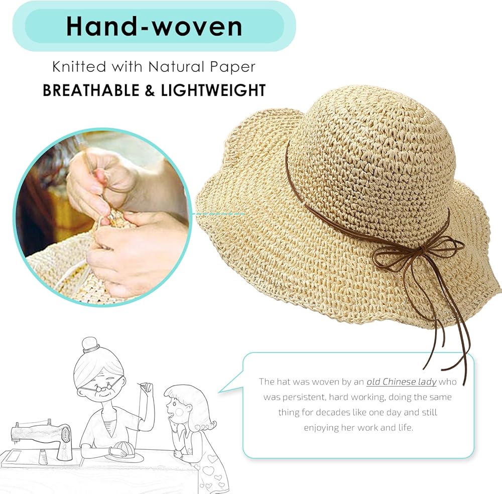 👒 PACKABLE BEACH HAT - Womens sun hat are most likely to be squashed when you keep them on the go. Do not worry. This beach hats for women foldable will not be destroyed anymore in transit. Flexible and durable paper straw helps maintain hats shape. Easy to reshape it. Carry it in the bag when traveling and perfect as new when taking it out!