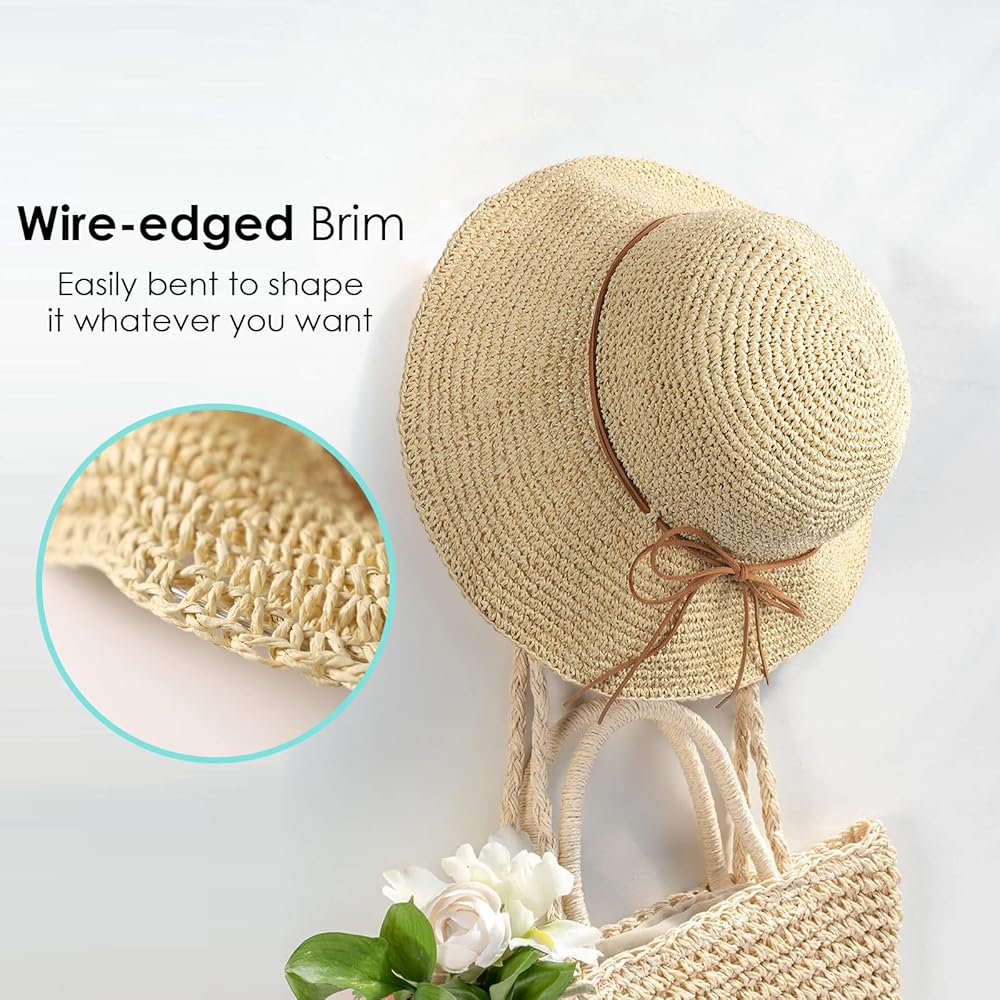 👒 UNIQUE DESIGNS STRAW Hat - This womens straw hat has a shapeable wire inside the edge of the beach hat. So you are free to create the cute look of sun hat womens. Keep it floppy and always look right. The attached decorative belt adds extra styles and improves your charming summer look...