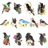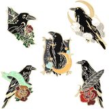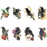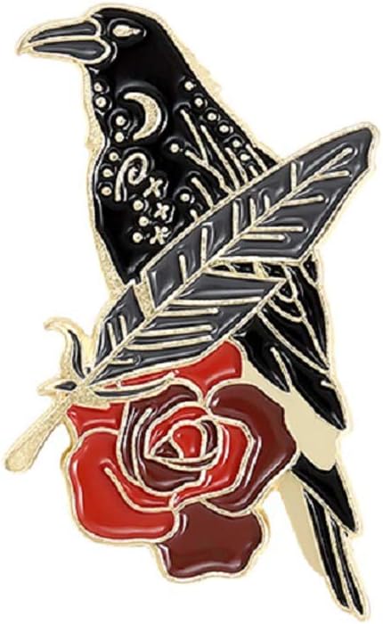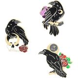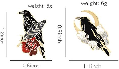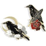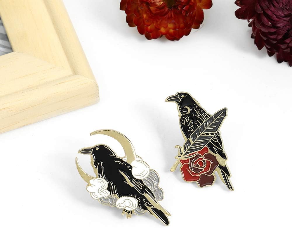 Gillna black crow art enamel pins set are designed with elements of crow,rose,feather,cloud,moon,stars.2 pcs cute enamel lapel pins with various designs.