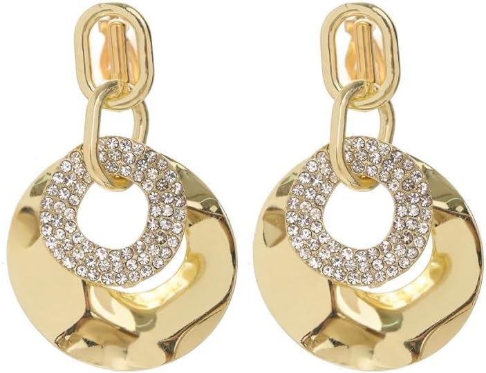 • High Quality Material&Unique Design:In Size Of 2.0inch*1.33inch,Gold Color.These Ear Clips are Made of High Quality Alloy,Fastness ,Decorated With Superior Zircons,Which Shine Brighter.These Earrings Clip On are Designed Two Hoop Shapes,The Small One is Fully Drilled by Zircons and the Larger One is Non-smooth Design,Makes it More Elegant and Classic in Daily Wear.