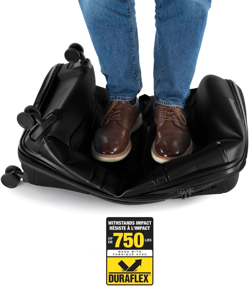 DURABLE YET LIGHTWEIGHT: Crafted from Duraflex material, this check-in luggage strikes the perfect balance between durability and lightweight design. With a remarkable ability to withstand forces up to 750 lbs, it ensures your items stay safe while being thrown around in airplane cargo. Its manageable size at 26 x 17.6 x 11 expands by 20%, offering flexibility for your packing needs and wants.