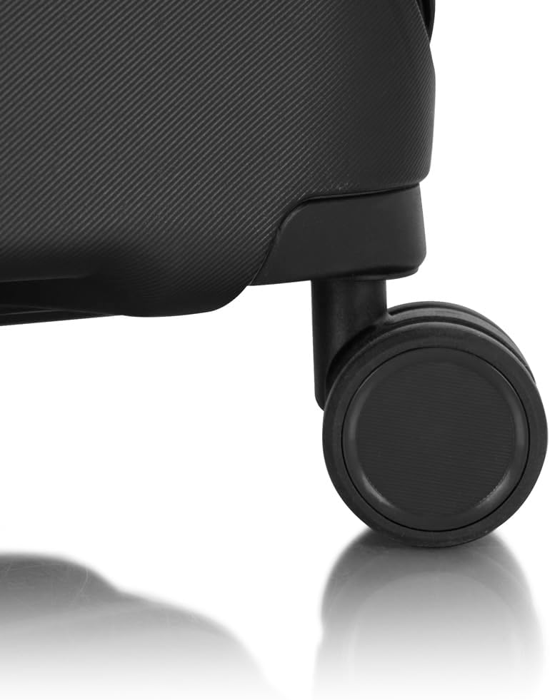 SMOOTH NAVIGATION: Glide through your travels effortlessly with the Heys Milos. Its lightweight aluminum push-button telescopic handle system allows for easy maneuverability. The 4-wheel 360 spinners ensure smooth rolling, guiding you seamlessly through bustling airports and challenging terrains.