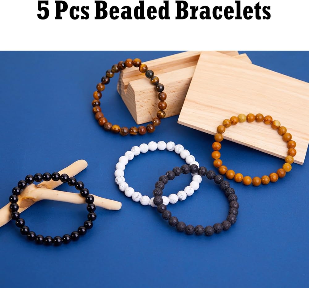 [Perfect Size] 5 pieces of natural stone bracelets, meticulously assembled with top-notch stretchable cords. Inner lengths span from 7.5 inches and more, catering to diverse wrist sizes of both men and women