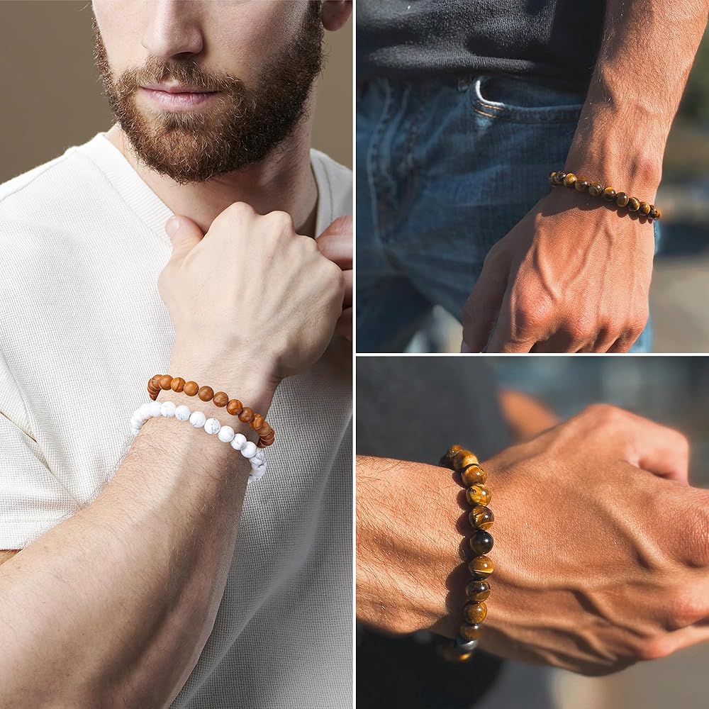[Best Gift Choice] A collection of high-quality natural stone bead bracelets, with a wide array of styles. Be it Christmas, Valentines, Father's Day, Teacher's Day, graduation, anniversary and birthday, presenting one to him, your grandpa, father, son, brother, friend, husband, or boyfriend would unquestionably be a selection that brings immense contentment to both sides