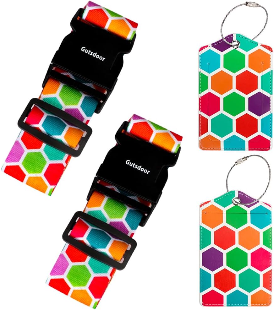 UNIQUE COLOR STYLE: The combination of the brightly colored suitcase straps, luggage connector straps and luggage tags will helped to identify your luggage quickly on the carousel, speeding up your airport travel, saving your time and bring you excellent travel experience.