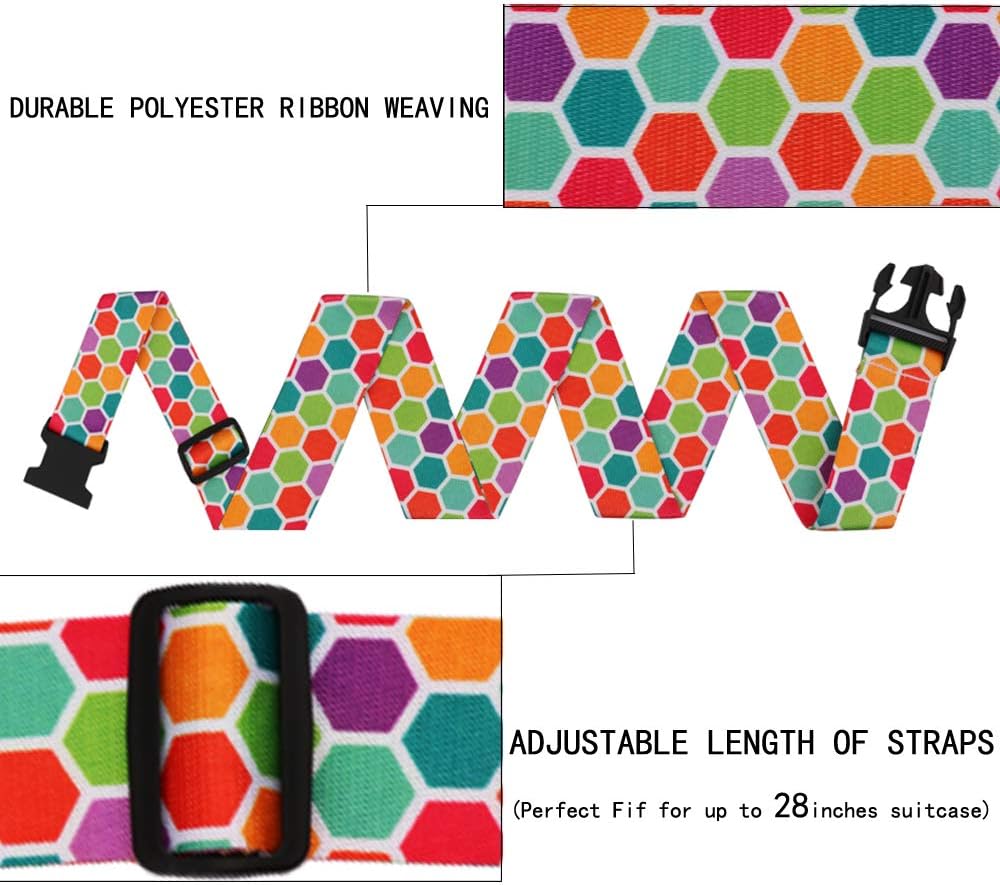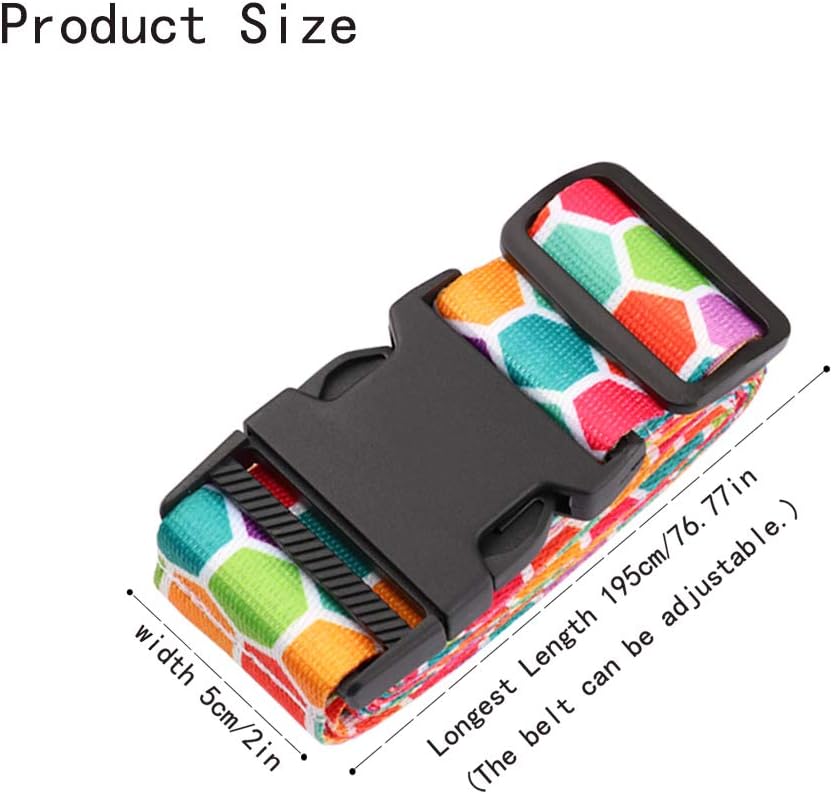 Adjustable luggage Belt length: 42"-76.77" / 106-195CM; Suitcase Belt width: 1.96" / 5CM; The colorful belt can be adjustable. Universal Size heavy duty luggage straps fit for 20"-28" suitcase, your suitcase will be attractive.
