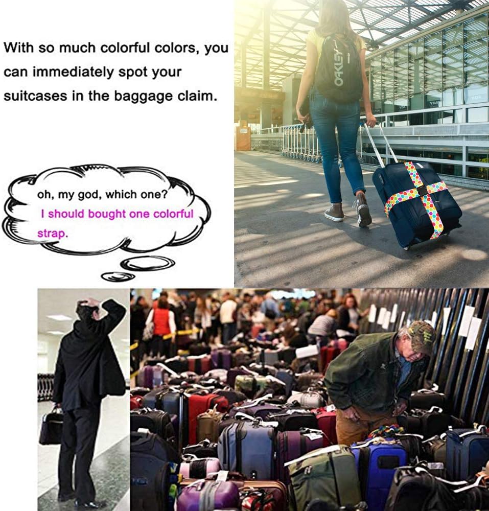 Colorful & Unique Style: This suitcase luggage straps with attractive color and unique texture, looks modern and outstanding. The bright color is easy to locate and stands out in a see of luggage on an airport carousel, which helps you find your luggage in a sea of black suitcases. Save your time and keep your travel happy.