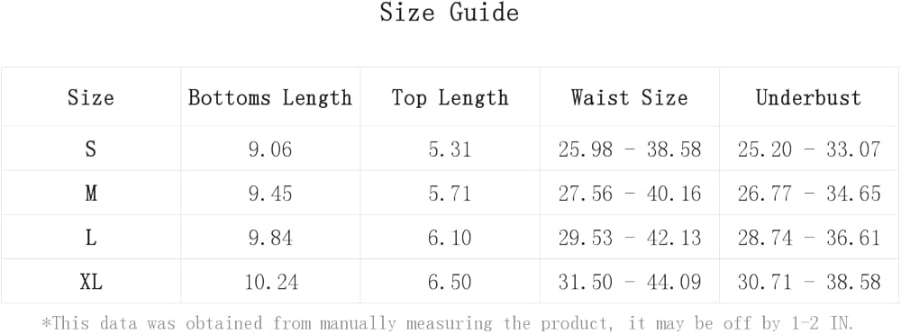 XL:Bottoms Length:10.2IN,Waist Size:31.5-44.1IN,Top Length:6.5IN,Underbust:30.7-38.6IN