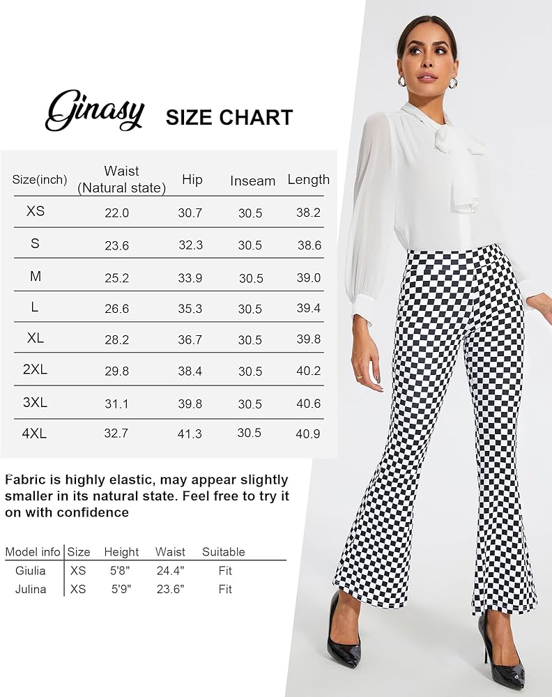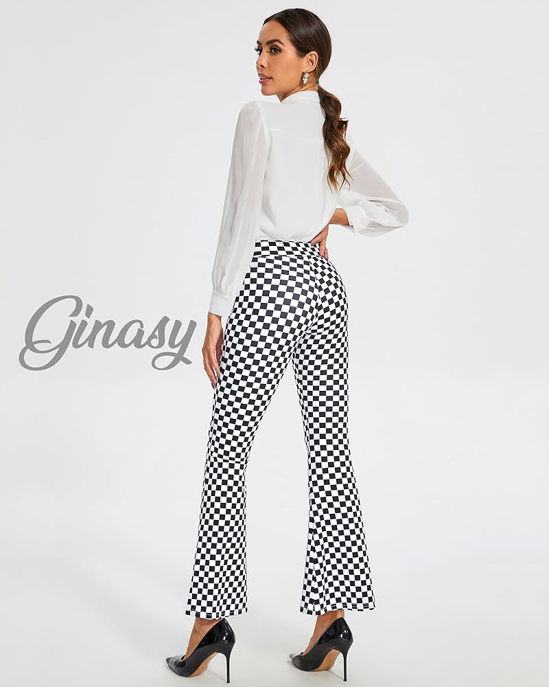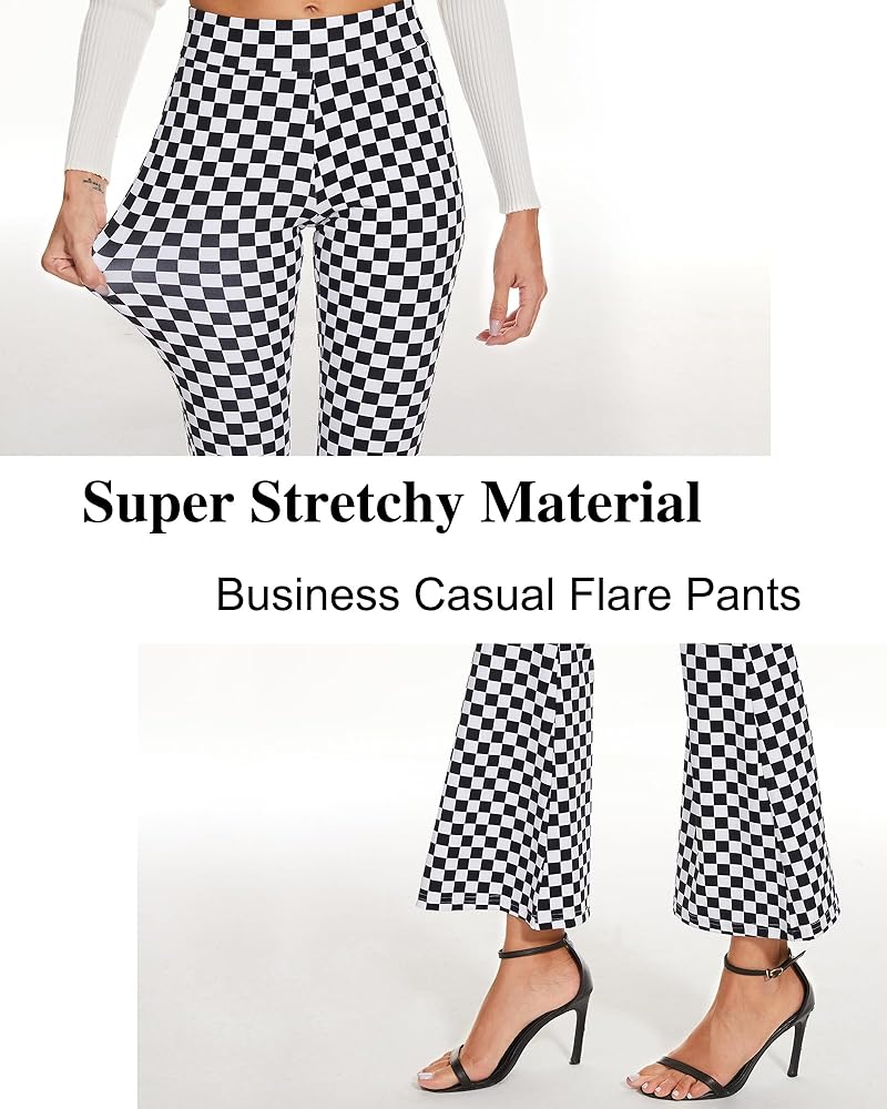 Fashion-Forward Bootcut Leggings: Tummy control office work pants for women, embrace a cutting-edge pant silhouette with these expertly tailored bottoms designed to hug the curves elegantly up top and gracefully flare out at the bottom. High waisted checkerboard pattern pull on pants design exudes sophistication, setting the stage for a truly stylish statement.