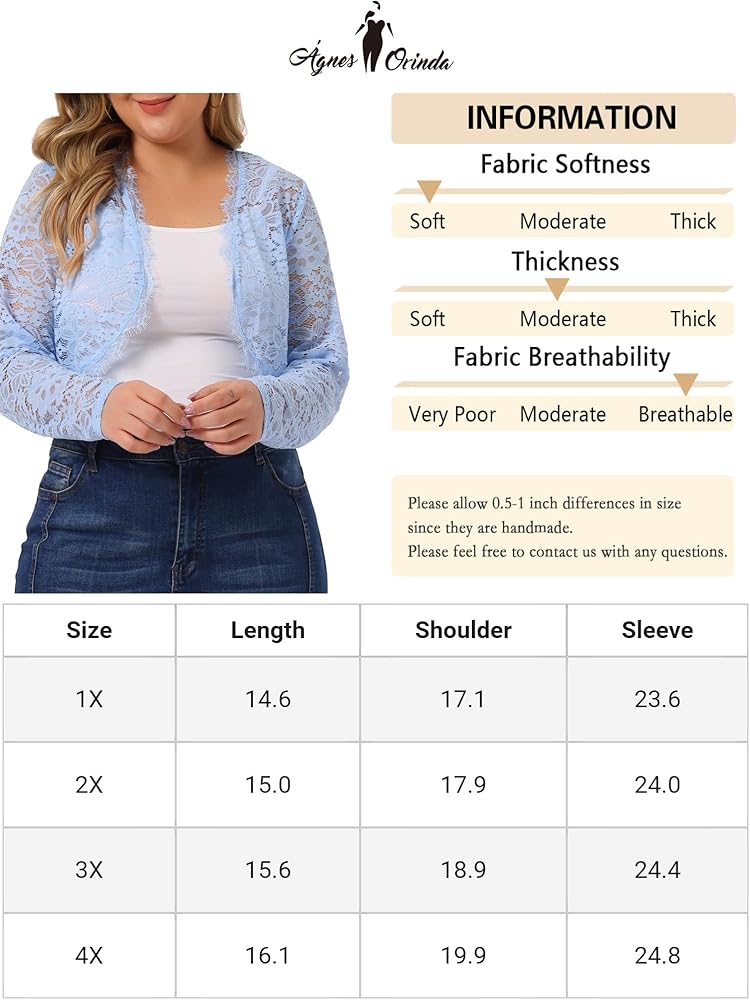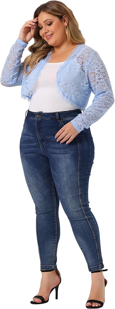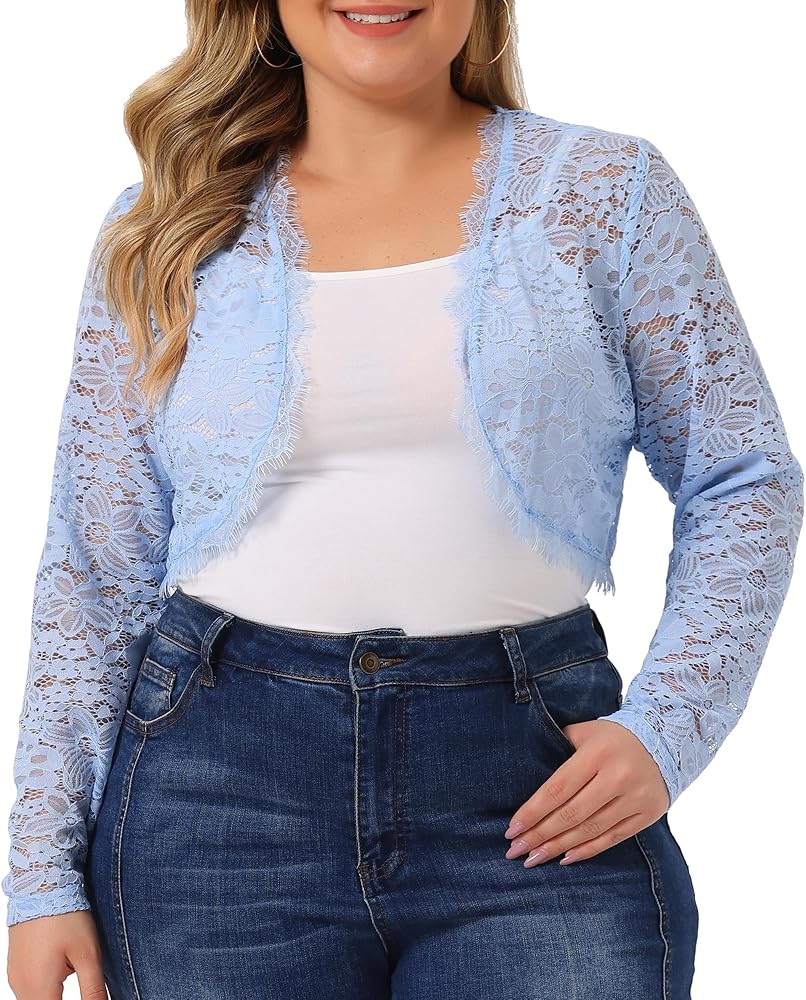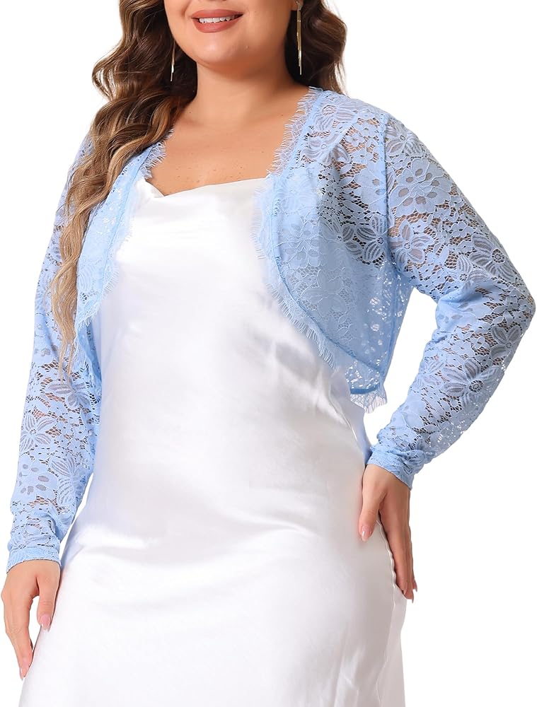 The floral lace open front bolero cardigan with long sleeves, crop length, lace allover, feminie chic style give you casual fashion look, it's light and soft wearing experience all-matched with camisole or sleeveless dresses