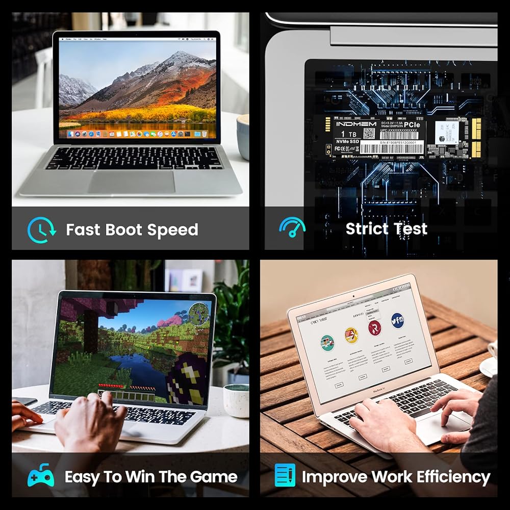 INDMEM PCIe NVMe Gen3x4 SSD 1TB 3D TLC NAND Flash Hard Drive SSD Replacement for MacBook Air 2013-2017, MacBook Pro Retina 2013-2015, iMac 2013-2017, Mac Pro 2013, Mac mini 2014 (1TB)