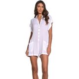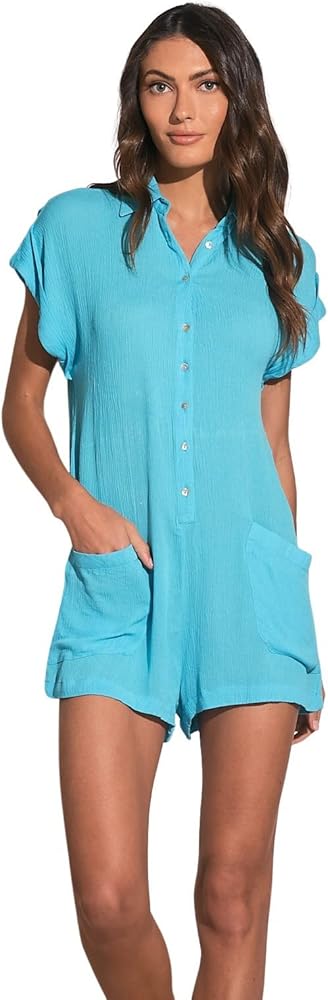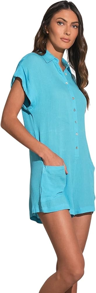 ELAN Women's Short-Sleeve Collared Button-Down Romper