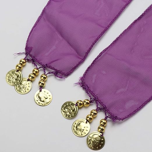 [ Package includes ]: 1 piece of belly dance hip scarf with 2 bracelets.