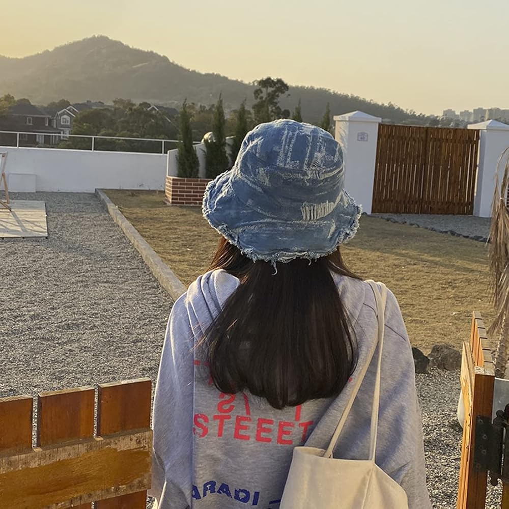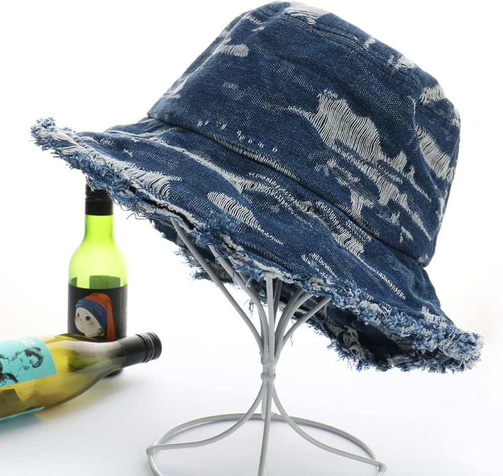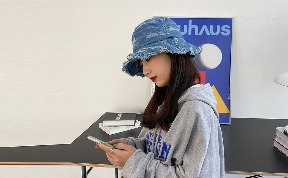 Large Brim Denim Bucket Sun Hat:Wide brim jean bucket cap is perfect for keep sun off from your face/hair/ear,great as a uv sunscreen caps on any outdoor activities such as fishing,boating, gardening, road trips, camping,beach travel,golfing,weekend getaway,holiday vacation and street fashions.