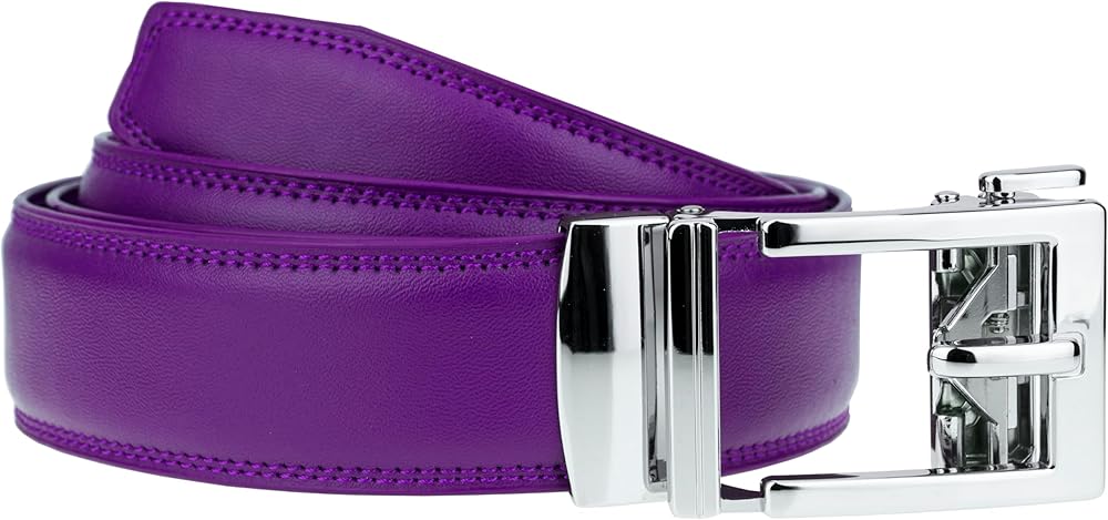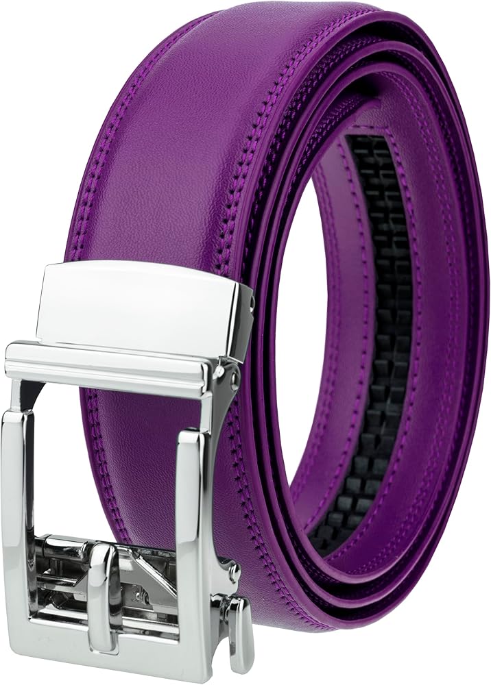 EASY USE: Slide the dress belt for men into the sliding buckle, and the holeless belt will auto-locks itself. Lift the automatic buckle, and pull the mens belt to release.
