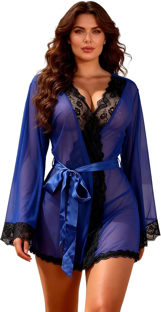 【PLUS SIZE LINGERIE FEATURE】Swimsuit cover up feature a flared sleeve open front style, this lingerie robe is perfect for lounging around the house or getting ready for a night out. The faux silk waistband adds a simple and stylish touch