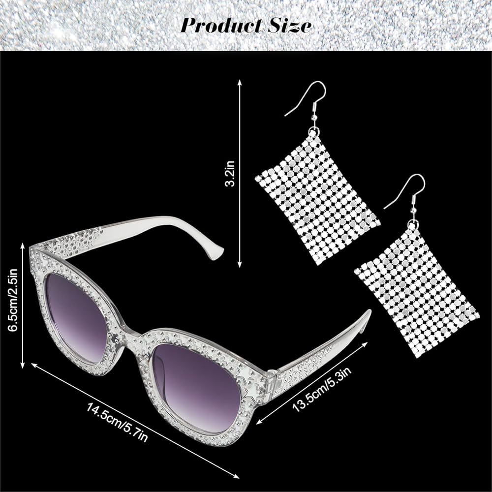 High-quality Material: The 70s silver disco costume accessories is made of high quality metal materials, disco sunglasses are mainly made of resin, inlaid with rhinestones, exquisite and cool. The 70s disco costume accessories set are sturdy and durable, and close to the body and lightweight, exquisite workmanship, not easy to fade and break, and can be reused for a long time, which can provide you with a comfortable wearing experience!