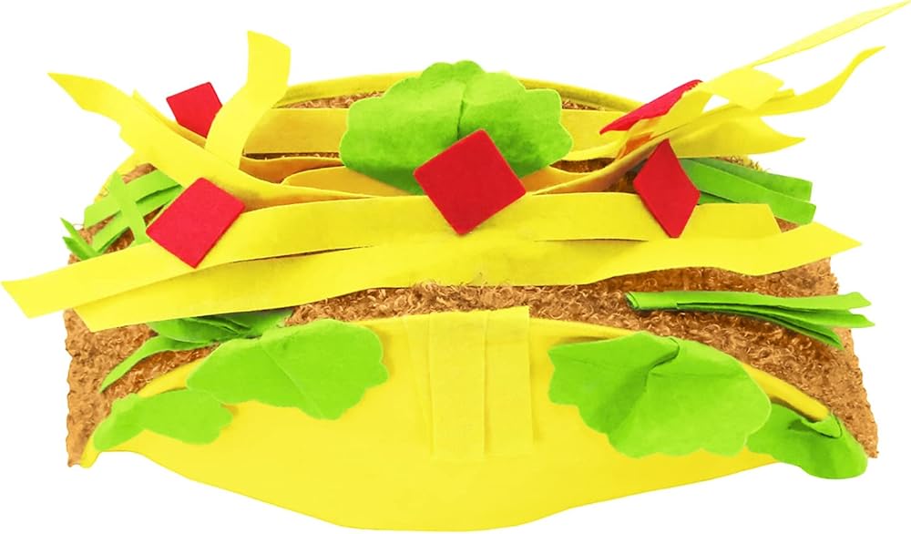 Are you a Burger Master? This season take your costume to the next level with this Oversized Funny Cheeseburger Hamburger Hat. Each burger cap features all the needed fixings. Cheese, Onion, Tomato, Pickle and Lettuce all with a tender piece of meat. Top bun features fake sesame seeds, top off this perfection. Perfect for Wacky Wednesday, Food Carnival, Photobooth hats, Cookouts, BBQ, Parades and more! This hamburger costume hat is approximately 15 inches across and stands about 6 inches tall! This funny hat is perfect for Men, Women and teens! Each hat fits about 61 cm or a hat size of 7 5/8th. This crazy Burger hat will fill out with your head inside the hat. Spot Clean only. For ages 14 and older.