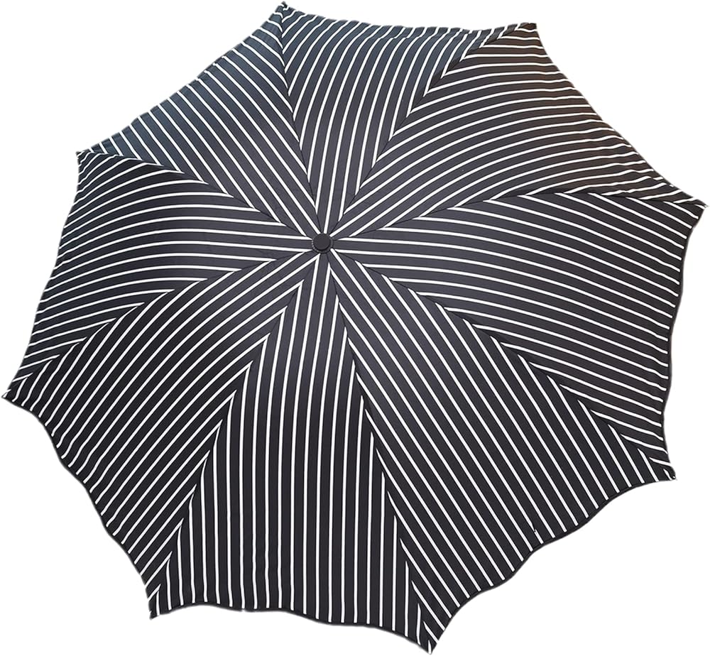 3. The striped sun umbrella provides great shade for sun protection and the black lining helps with heat protection.