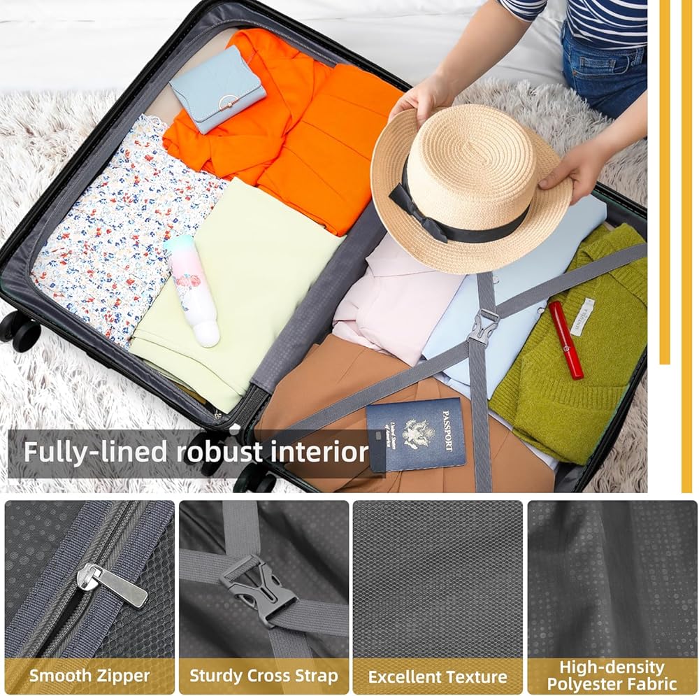 Five-Piece Luggage Sets: The luggage set includes a versatile range of sizes - 20-inch, 24-inch; and 28-inch suitcases, along with a travel bag and a toiletry bag. Each item serves a specific purpose, providing a comprehensive solution for various travel needs.
