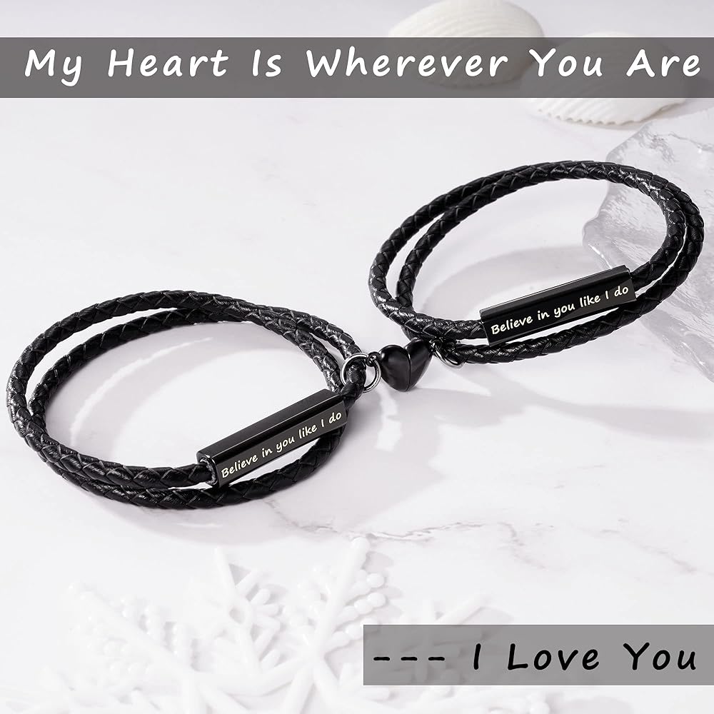 Btysun Couple Bracelets for Women Gifts for Men Wedding Anniversary Birthay Gifts for Boyfriend Girlfriend Matching Bracelet 2pcs Engraved Promise Leather Gift Christmas Jewelry