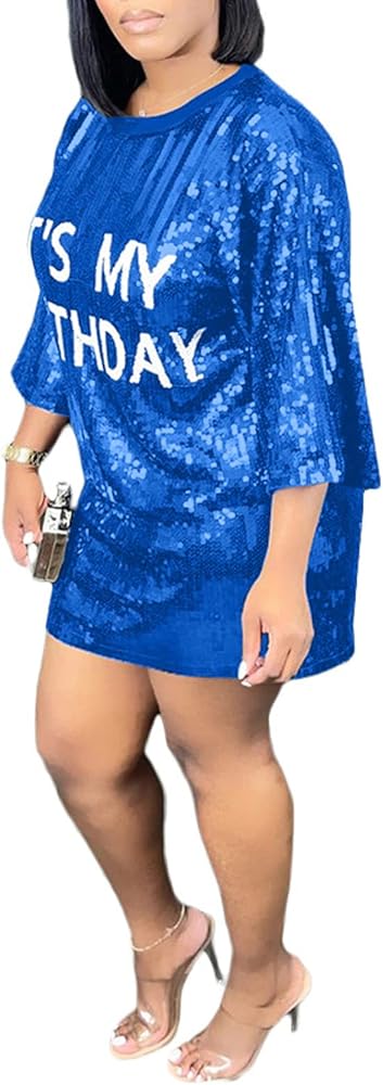 Features : O Neck Haft Sleeve Shirt Dress , Full Shiny Sequin , Mini Tunic Dresses , Letter / Graphic Print , Casual Loose Summer Short Dress
