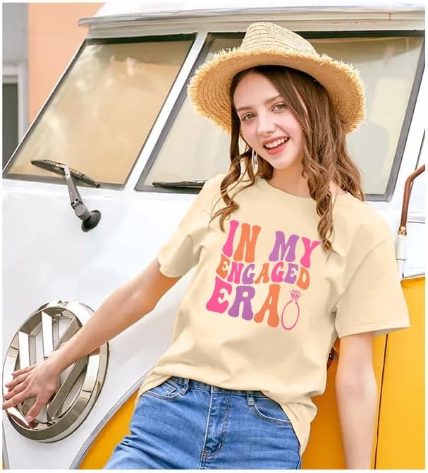 Material: In My Engaged Shirt has a very soft touch and is made of high-quality fabric. It has good breathability, durability, and color retention. Wear this cut letter printed shirt to express your point of view, which is perfect for women who are happy about their engagement