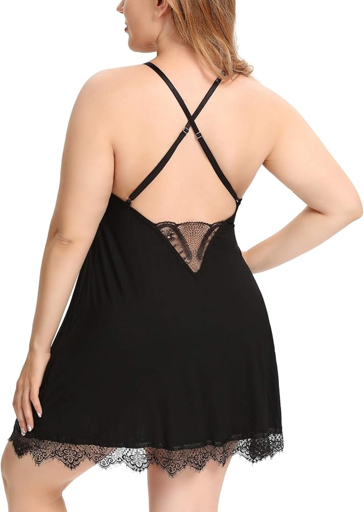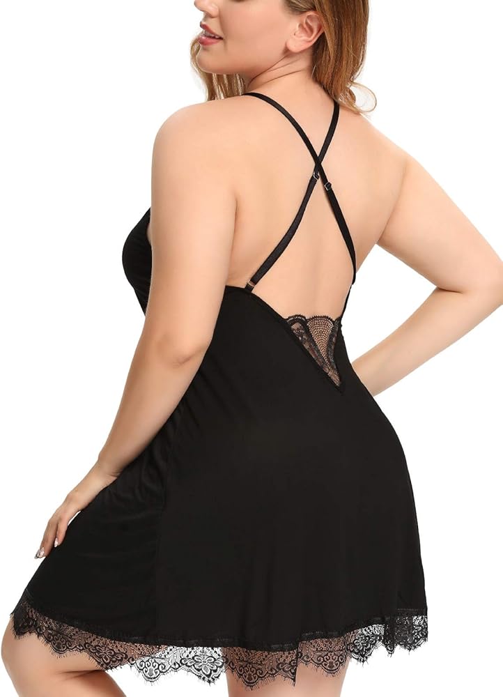 Plus Size Lingerie for Women Sexy V Neck Back Cross Strap Nightgown Lace Babydoll Chemise