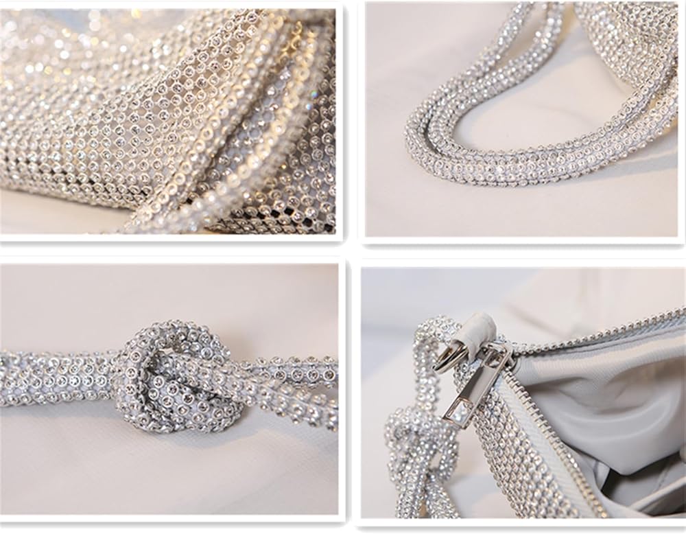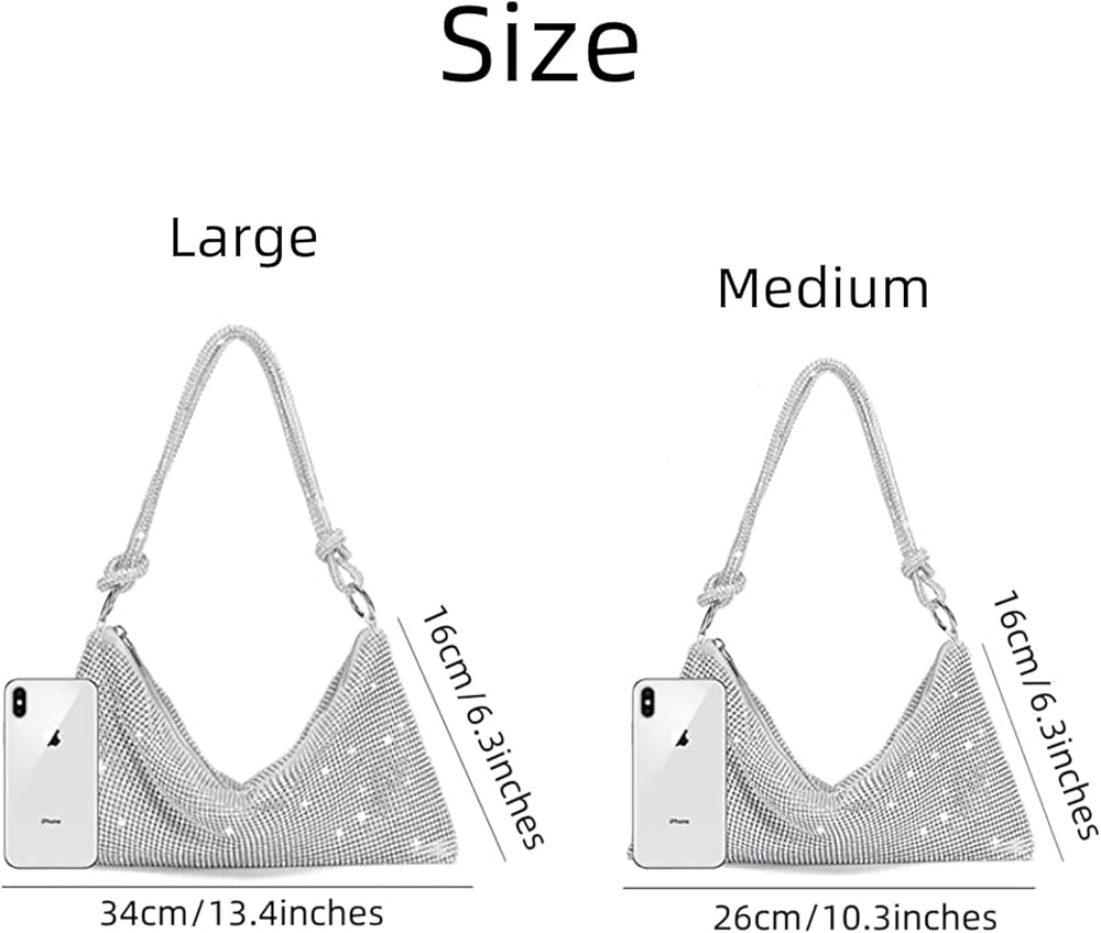 【Stylish Design】Our rhinestone purse features a luxurious and unique design, with two compartments (the main pocket and a side pocket), a zipper closure, and an adjustable knotted handle that allows you to wear it as a shoulder bag. This gorgeous and chic crystal rhinestone wandering bag is very charming and will make you look elegant and become a compelling focus in any party or event.