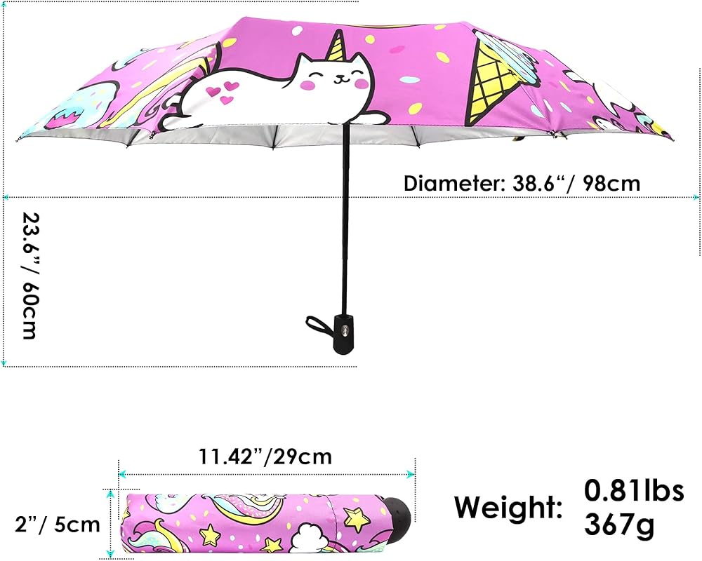 【UPF25+ & Lightweight & Small Size for You】The umbrella has a silver coating layer fabric reflecting heat to cool you down. Protect your skin in the sun. A heavy umbrella will not only make you feel sore when hold but also difficult to carry. Out adults & kids umbrella folded size is 11.4 inches. Net weight is 0.8 lbs. Although the size is small, the umbrella surface is large (42-inch canopy). This umbrella is very suitable for travel, school, mountain climbing, and outdoor activities to carry.