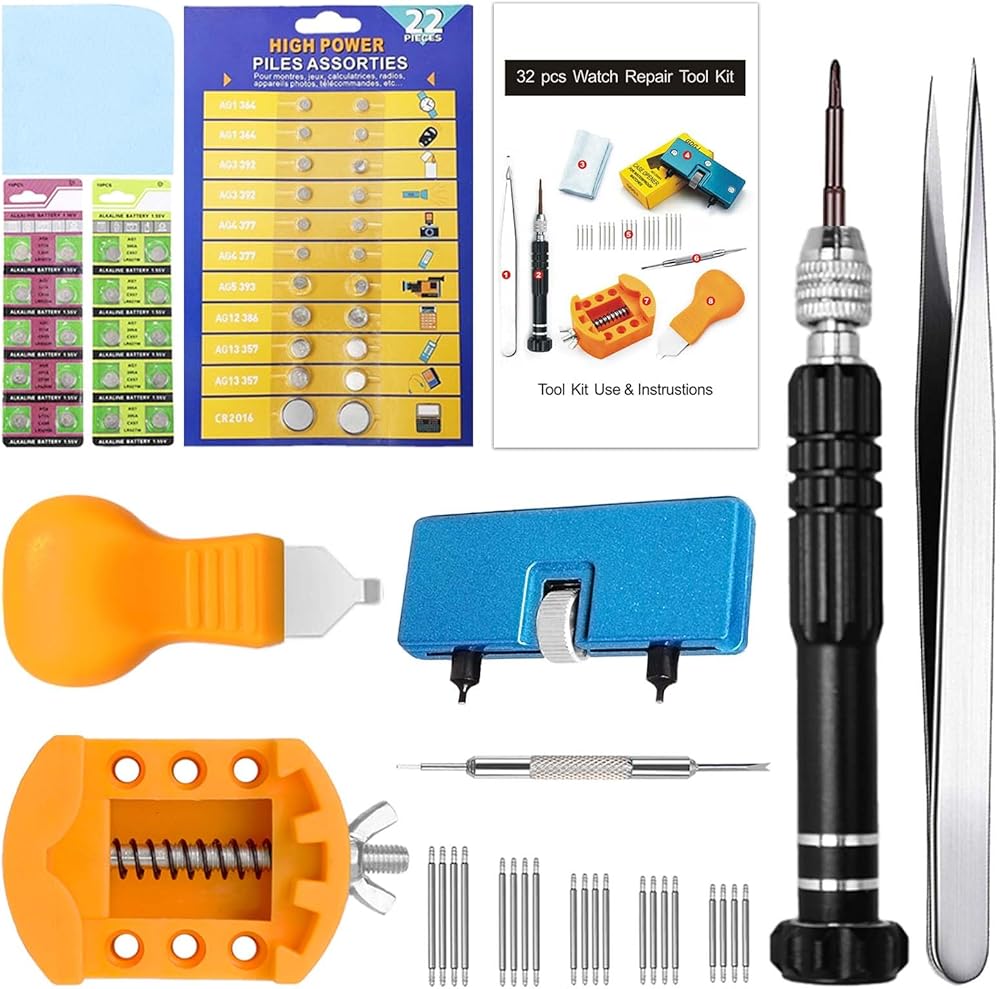 Watch Battery Replacement Kit, GLDCAPA Watch Repair Screwdriver, Watch Band Replacement tool, Watch Wrench Back Remover, Watch Case Opener, Spring bar, Tweezers with 42pcs Watch Battery