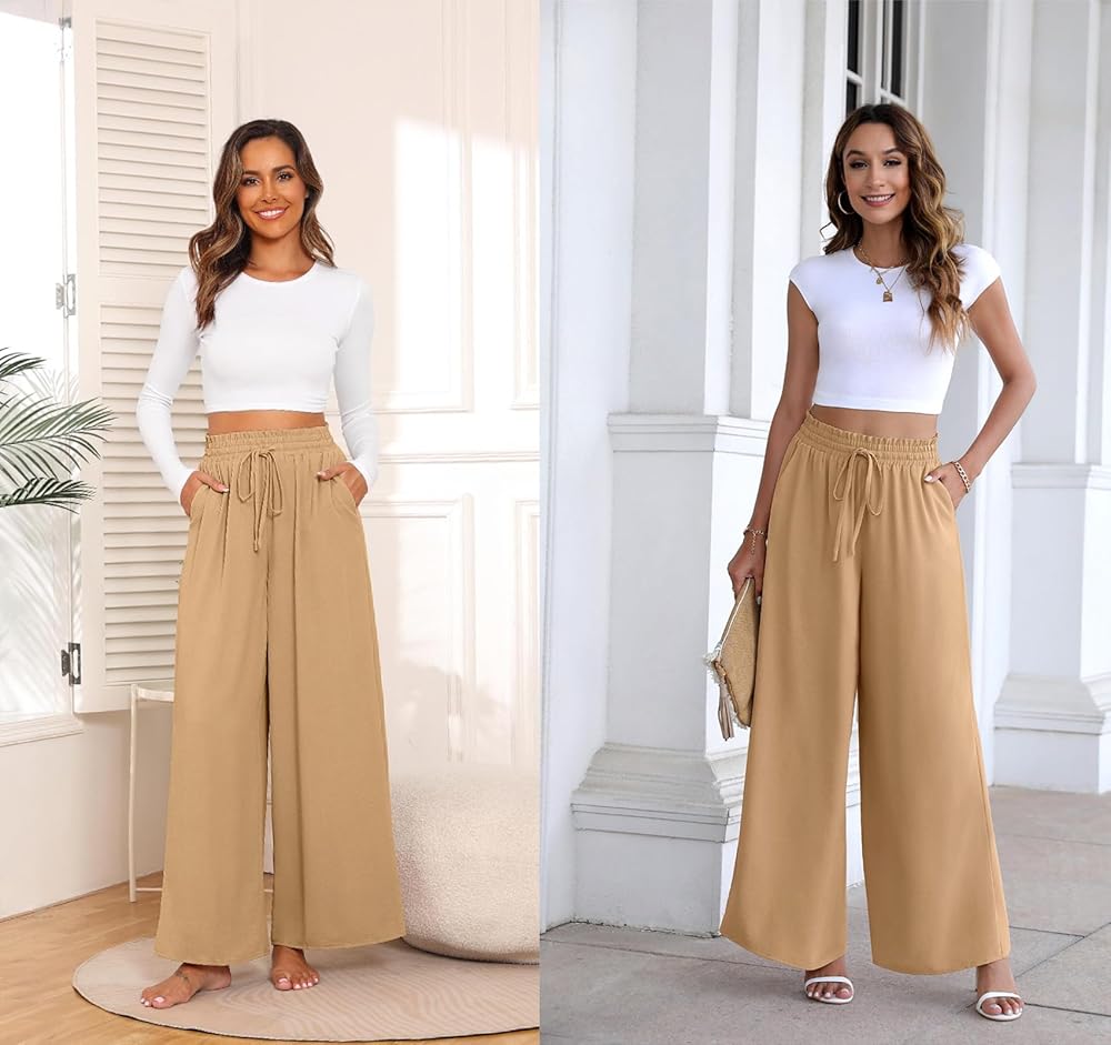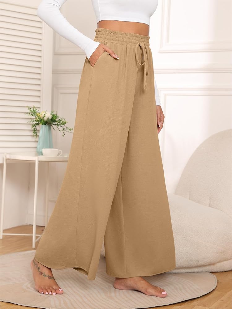 Style: Paper bag pants, wide leg linen pants, flowy pants for women high waisted, business casual pants for work, ralxed fit comfy pants women, lounge pants for beach, dressy palazzo casual, tie knot drawstring elasti waiste design.