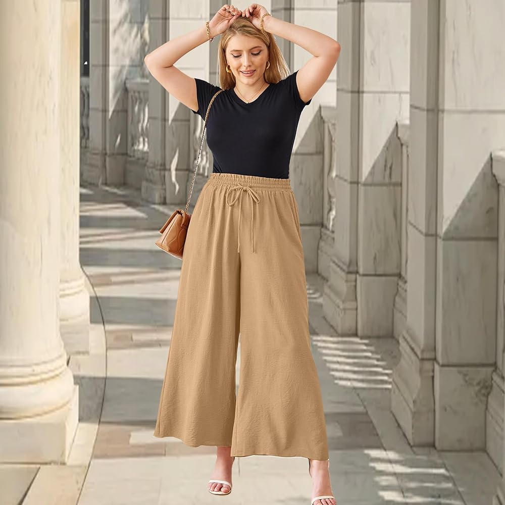 Chic Design: Wide leg palazzo pants are effortlessly stylish, with flexible elastic high waistband and drawstring for maximum adjustability and comfort. Flattering and flowy, casual linen lounge pants are perfect for any occasion.