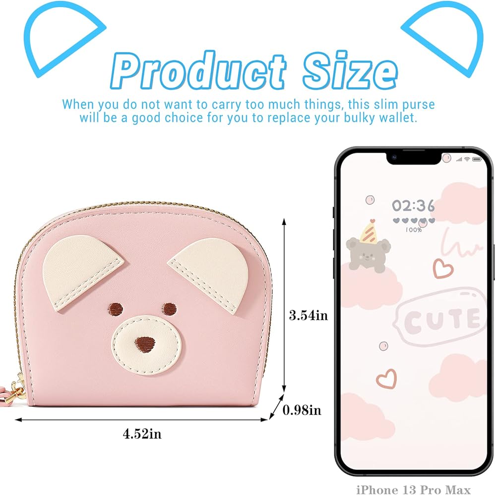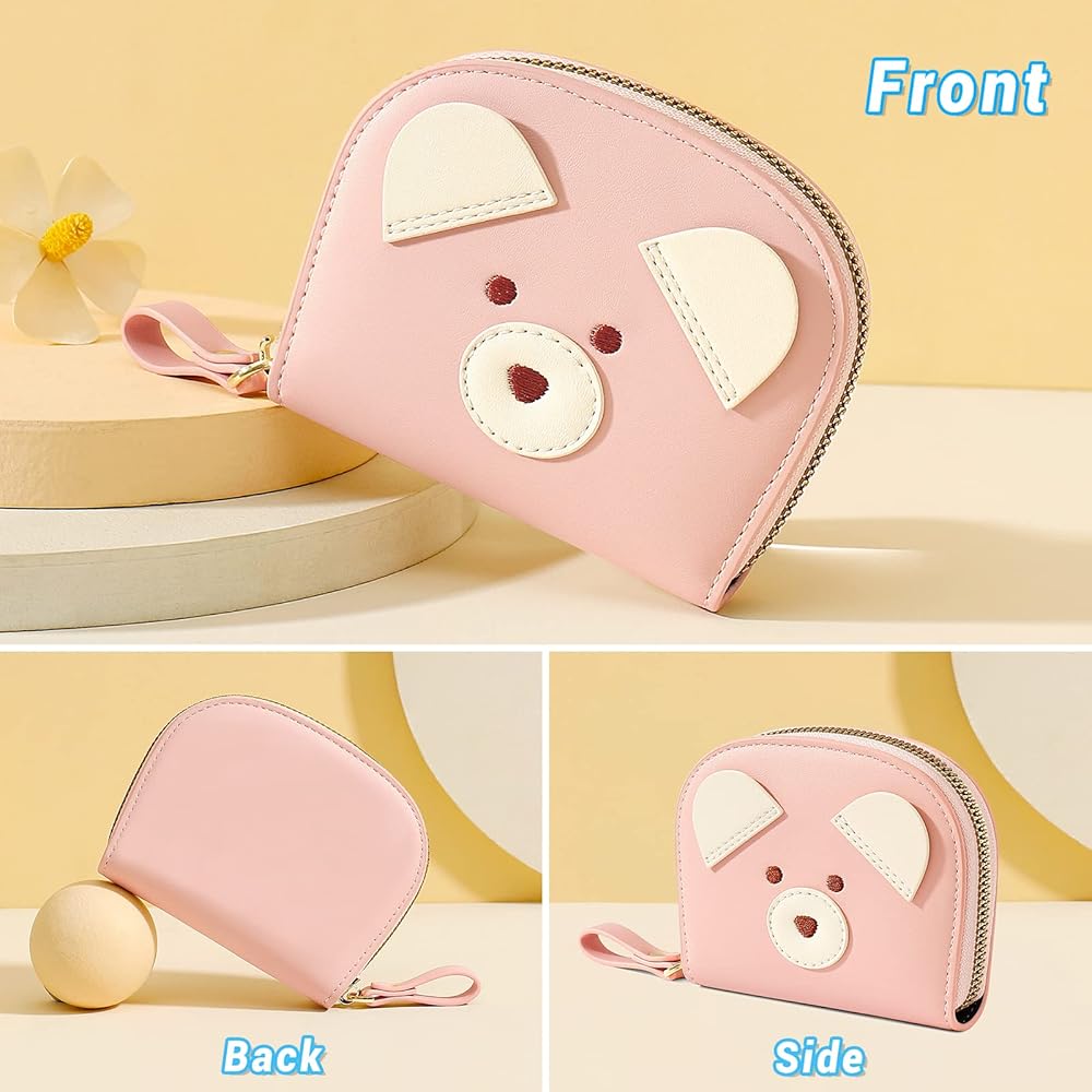 ʕᴥʔ[Cute Credit Card Holder for Women] We give consideration to high capacity and design, the simple and elegant are with the rich texture materials and cute pattern, which is interesting and fashion. Cute Bear and round outlook brings a unique and exquisite small leather wallet for you.