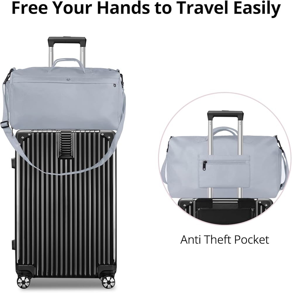 Multi-purpose Duffel Bag - With handles and adjusted strap, you can use it as handbag, shoulder bag or cross body bag. It not only can be a gym bag, but also can be a dry wet separated swimming bag, beach bag, dance bag, shower bag, hospital bag, overnight bag or weekender bag. Perfect for traveling, weekend trip, gym, yoga, work, shopping, beach or daily use.