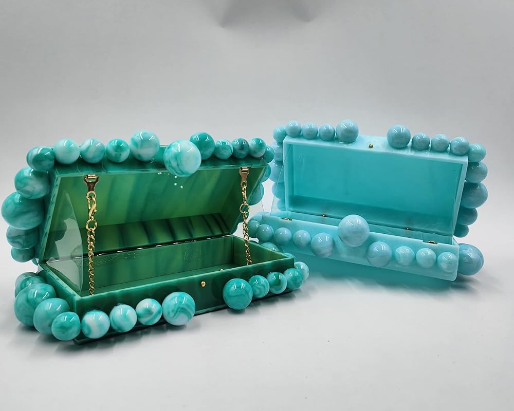 Acrylic Evening Handbag Beads Bag for Women Graceful Shoulder Bag Satchel Marble Clutch Purses for Wedding Party